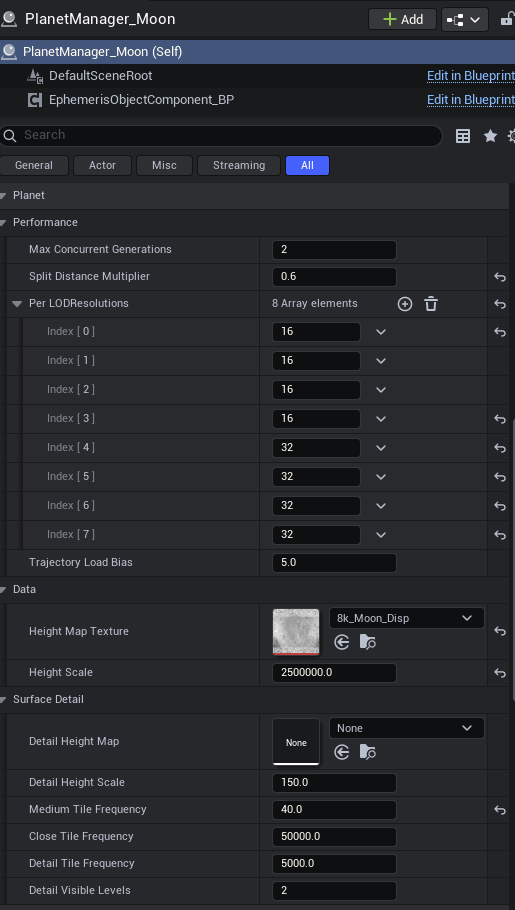 The system also provides a lot of exposed properties to curate needs based on planet and platform, for example the density of every Level of Detail to keep constraints performant and functional on mobile. There are also constraints on streamloading the LODs such as to not hang up or crash the VR headset, there was an awful lot of crashing and bugs testing this and getting it to work. I was close to giving up, forward momentum really slowed to a crawl for a week or so.